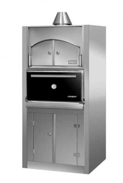 Пекти-гриль на закритому столі з дверцятами, з шафою над пічкою, дозволяє одночасно використовувати переваги печі та мангалу. Як паливо використовується чисте деревне вугілля. Приготування їжі здійснюється у закритій печі на ґратах. Допускається одночасне використання не більше 2-х грат. Пекти HJX-50/L*ACX-P підійде для обслуговування ресторану зі 100 посадочними місцями. Виготовлена методом високоточного чавунного лиття (товщина стінки 5 см). Конструкція печі-грилю гарантує експлуатацію протягом 15-20 років без спеціального обслуговування. Для регулювання інтенсивності горіння служать шибер, стандартно встановлений на димарі печі і регульований колосник, розташований під ґратами, де відбувається згоряння вугілля. При установці в закритих приміщеннях конструкція печі гарантує її безпечну експлуатацію. Литі напрямні під ґрати дозволяють регулювати положення продукту щодо вугілля. Завдяки високим температурам час приготування страв у печі JOSPER дуже мало: - курячі ноги 3 хв. (7 кг, 2 грати); - Великі шматки яловичини 6 хв. (7 кг 2 грати); - Картопля цілком 10 хв. Служить для приготування всіх видів грилів та барбекю.