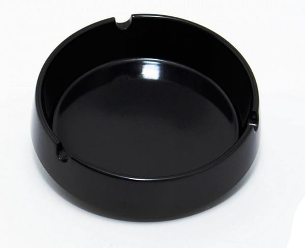 Попільничка з меламіну виконана в формі кола, по окантовці передбачені спеціальні виїмки під сигарети.