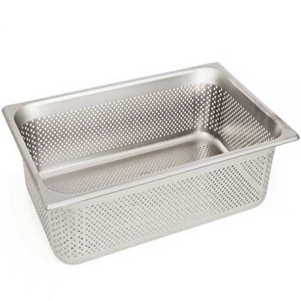Перфорована ємність виготовлена з нержавіючої сталі. Товщина матеріалу на 33% перевищує стандартну норму, що гарантує максимальну міцність та довговічність у використанні металевого посуду.