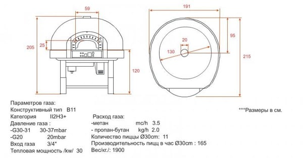 Нагрівання печі циклатермічний за допомогою газового пальника (метан/пропан-бутан), а так само ірециркулюючого вентилятора, який підтримує оптимальну температуру підлоги печі.