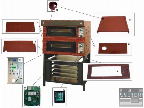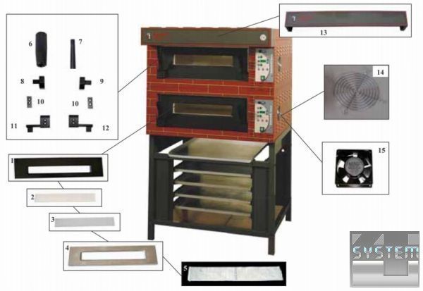 - Накладна система печі для однокамерної піци - безпроблемна надбудова до пекарських станцій для піци двокамерних або трикамерних.