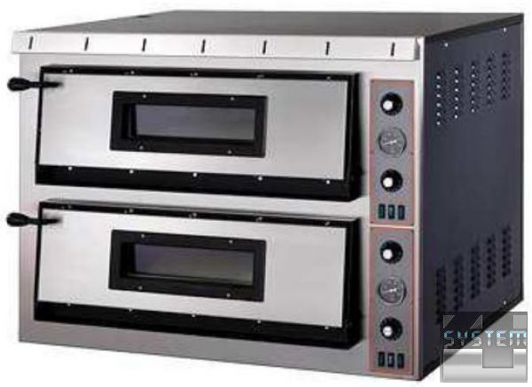 Пекти для піци з н/ж стали з електромеханічним керуванням. Призначена для приготування свіжої і замороженої піци. Оснащена дверима з подвійним склінням, внутрішнім підсвічуванням, вогнетривким каменем розташованим на дні печі, термостатом з контрольною лампою та регулюванням температури. Досягнення максимальної температури за 15 хв. Приготування піци до 15 хв.