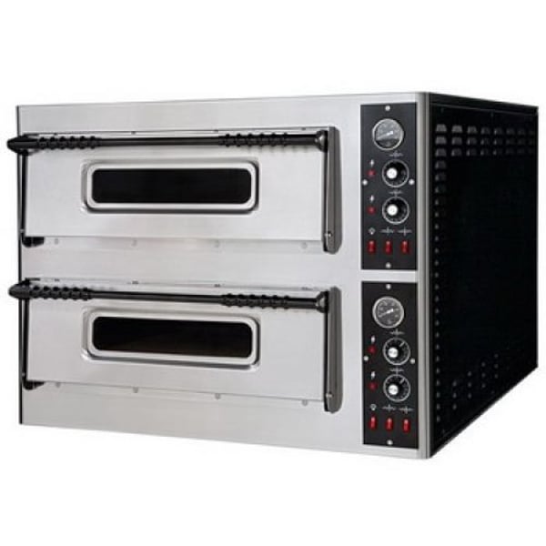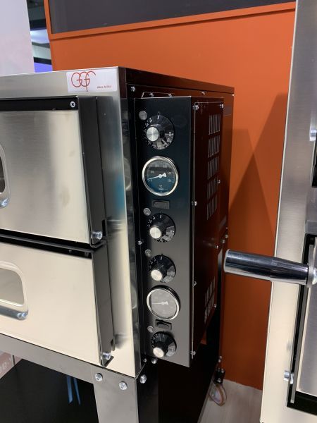 Двоярусна піч виготовлена з високоякісної нержавіючої сталі із вбудованим термометром керується вручну, температура виставляється за допомогою термостату.