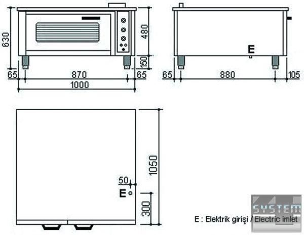 Зовнішнє оздоблення з хромонікелевих листів 18/8 н/с AISI 304, пофарбованих електростатичним шляхом. Вогнетривке дно з вогнетривкої цегли. Двері печі оснащені склом для візуального контролю за продукцією, що випікається. Регулює температуру в межах 50-500 ° C за допомогою термостата. Зволоження всередині камери за допомогою збризкування води. Дренажна система видалення води після конденсації у разі несподіваного охолодження. Незалежна робота верхнього та нижнього нагрівального приладу печі.