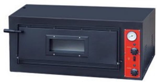 Однокамерна піч для піци, має діапазон регулювань температури від 50 до 450 градусів, обладнана двома терморегуляторами, для розподілу температури у верхній та нижній зонах печі. Жароміцне оглядове скло, вогнетривкий камінь, термометр.