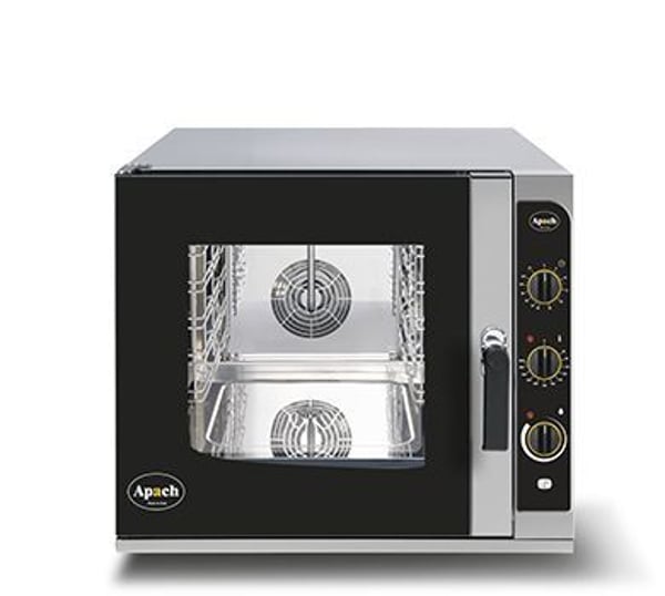 Компактне та дуже зручне обладнання Apach спеціально виготовлене для використання у різних підприємствах громадського харчування, маленьких та великих закладах, кафе, ресторанах. Його місткість 5 рівнів деко, розміром GN 2/3 і відстанню 70 мм між ними. Регулятори температури допомагають швидко встановити температурний режим від 30 до 280 °C. Пекти проста у використанні з невеликими габаритами 700х715х700 мм .