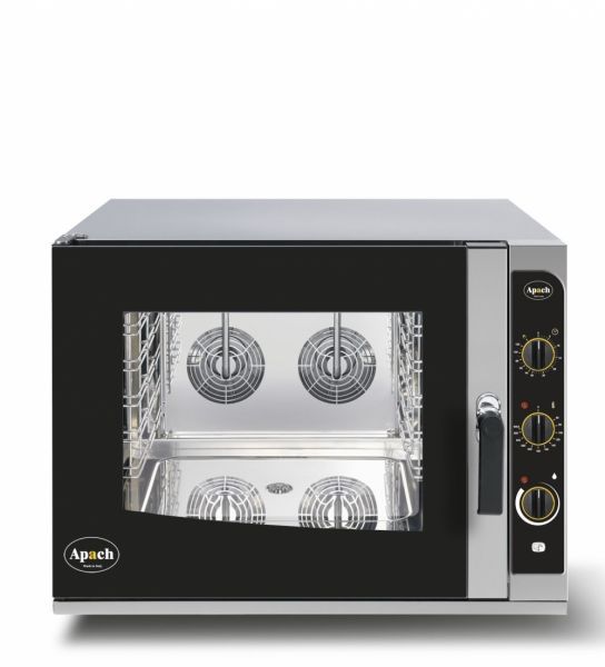 Компактне та дуже зручне обладнання Apach спеціально виготовлене для використання у різних підприємствах громадського харчування, маленьких та великих закладах, кафе, ресторанах. Його місткість 5 рівнів деко, розміром 600х400мм або GN1/1 і відстанню 70 мм між ними. Регулятори температури допомагають швидко встановити температурний режим від 30 до 280 °C. Пекти проста у використанні з невеликими габаритами 920х840х705 мм .