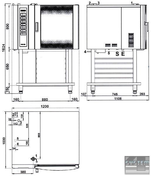 Обробка 22 піддонів GN1/1x10мм одночасно. Виготовлена повністю з хромонікелевих листів 18/8 н/с AISI 304. Повністю автоматична. картку з електронною програмою або цифрова панель керування. Електронна карта з 30 програмами та контроль усіх програм за допомогою столу управління. Однорідне поширення тепла всередині печі та рівномірна обробка за допомогою вентилятора у печі. Двері з жаростійким подвійним склом та спеціальними незаймистими прокладками відповідно до санітарних умов. Регулювання температури обробки та контроль внутрішньої температури за допомогою контактного термометра. Регулює період обробки за допомогою таймера. Легко відкривати та чистити внутрішнє скло дверей. Внутрішнє освітлення за допомогою розташованих усередині ламп У разі відмови вентилятора теплоізоляція припиняє роботу, аварійний вимикач усуває палаючі елементи та вентилятор при відчинених дверях, запобіжний клапан запобігає збільшенню тиску пари в котлі і включається обмежувальний термостат, якщо внутрішня температура більше 3000С. 6-рівнева швидкість вентилятора може регулюватися за допомогою столу керування, при цьому початкове положення становить 350 об/хв. а останнє положення – 1700 об/хв. Пічний двигун обертається в обох напрямках. Мінімальна втрата тепла завдяки ізольованій пічній камері.