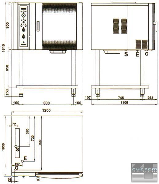 Здатність обробки 20 піддонів НГ 1/1x10мм одночасно. Виготовлена повністю із хромонікелевих листів 18/8 н/с. легко використовується та переноситься Однорідне поширення тепла та рівномірна обробка за допомогою вентилятора. Регулювання температури обробки та контроль внутрішньої температури за допомогою контактного термометра. Регулює період обробки за допомогою таймера. Обладнана газовим вентилем, системою автоматичного запалювання та аварійним пристроєм у разі порушення режиму горіння. Для роботи використовується СНД або природний газ та перетворення без будь-якої модифікації. Обробка їжі без контакту з газом, що горить, завдяки камері горіння, розташованій окремо від пічної шафи. Зволоження всередині камери шляхом збризкування води на їжу у разі потреби. Двері з жаростійким подвійним склом та спеціальними незаймистими прокладками відповідно до санітарних умов. Система безпеки припиняє роботу, якщо двері відчинені. Мінімальна втрата тепла завдяки ізольованій пічній камері. Внутрішнє освітлення за допомогою вбудованих у двері ламп.