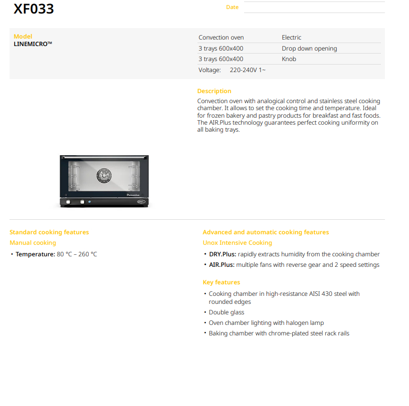 Специфікаційний лист Unox XF033