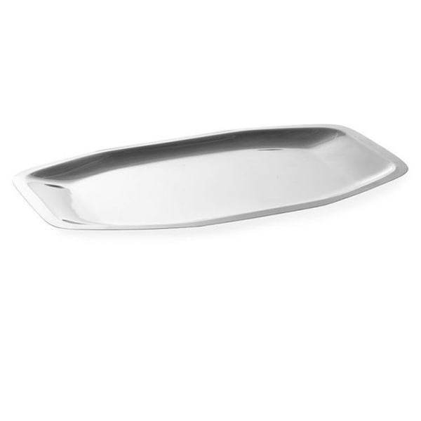 Таця для гарнірів, виготовлена з нержавіючої сталі, краї плавно підняті.