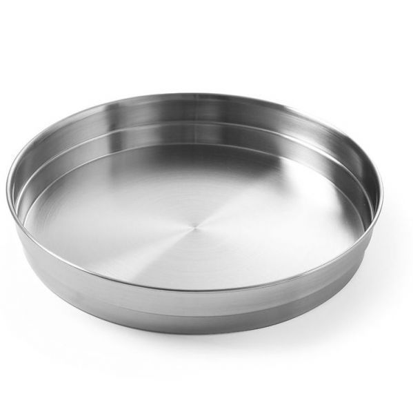 Таця для офіціанта, круглої форми, має високий бортик, виконаний з нержавіючої сталі.