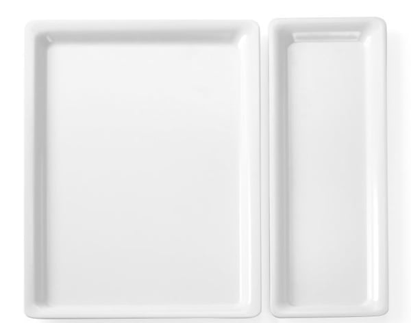 Прямокутний піднос використовують для подачі десертів, закусок, суші та м'ясної нарізки.