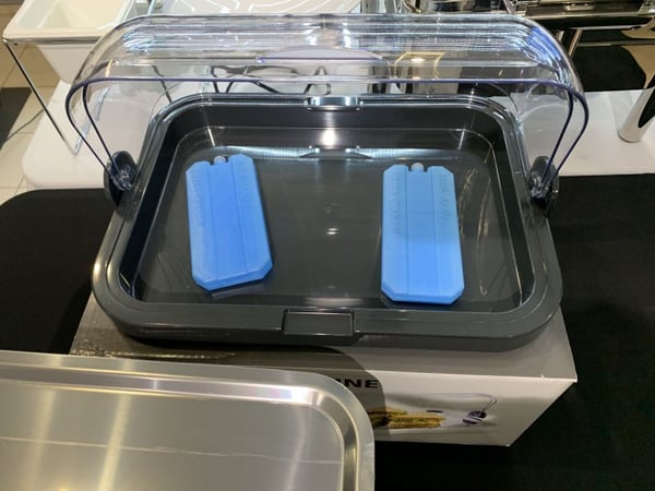 Піднос виконаний з харчового ABS-пластику, прозора кришка Rolltop із SAN-пластику також має резервуар для холодоагенту.