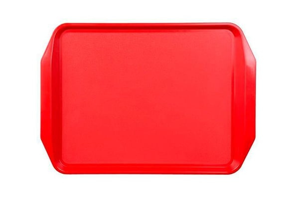 Червоний піднос для посуду виконаний з практичного поліпропілену, якому характерна висока міцність і твердість поверхні.