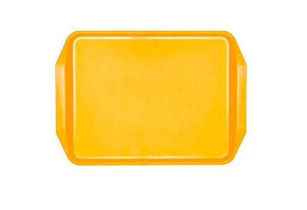 Жовтий піднос для посуду виконаний з практичного поліпропілену, якому характерна висока міцність і твердість поверхні.