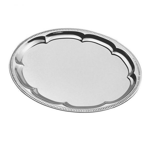Піднос сервірувальний, декоративний, виконаний з нержавіючої сталі. Відполірована, круглої форми.