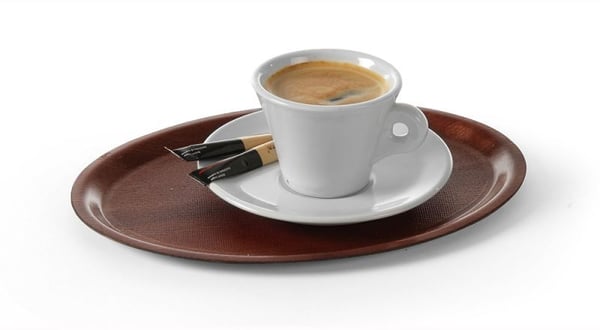 Піднос з антиковзким покриттям, виконаний з дерева, що ламінує, овальної форми. Удароміцний та зносостійкий.