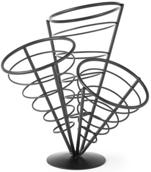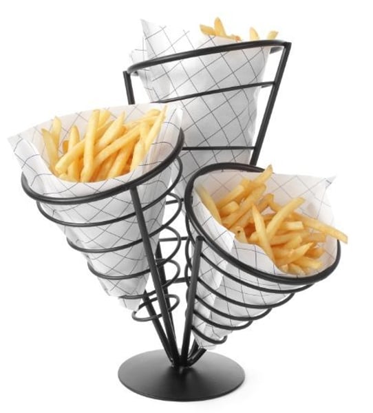 Підставка для фрі оснащена трьома дротяними склянками, які поміщають хрусткий обсмажений продукт.