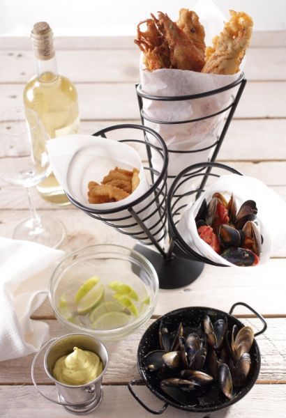 Конусна страва ідеально підійде для професійної подачі морепродуктів, картоплі фрі та смажених овочів.