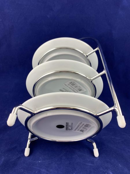 Підставка під три тарілки, діаметром 170 мм, виготовлена із високоякісної нержавіючої сталі. Має зручні ніжки, не ковзають.