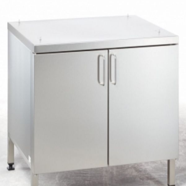 Стіл-тумба для стійкого встановлення апарату RATIONAL, виконана з високоякісної спеціальної сталі відповідно до діючих гігієнічних норм.