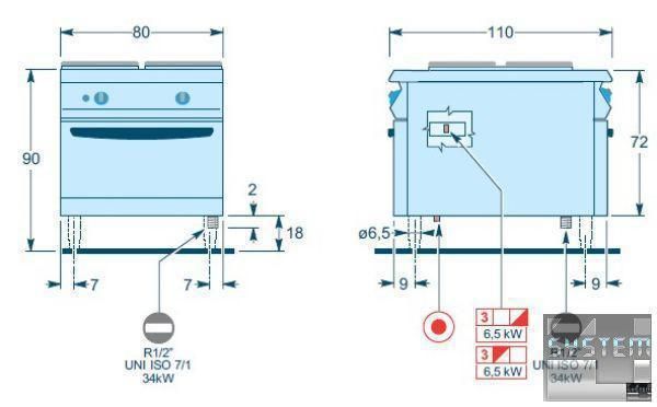 Сквозная статическая электрическая печь из нержавеющей стали AISI 430 вместимостью 1x2/1GN + 1x1/1GN. Три уровня напрявляющих для гастроемкостей из нержавеющей стали, легко снимаются для очистки. В комплекте хромированная решетка 1х 2/1 GN. Нагревание посредством изолированных нагревательных элементов, мощностью 6,5 кВт. Контролер температуры приготовления от 100°C до 340°C.