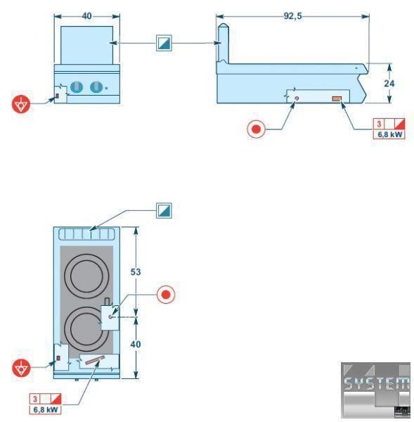Две независимые нагревательные зоны мощностью от 1,5 кВт до 3,4 кВт каждая, диаметром от 19,5 см до 27 см.