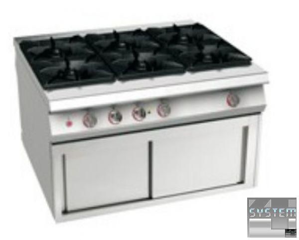 Газовая плита на 6 горелок Angelo Po 12WFAAA на подогреваемом шкафу для посуды относится к тепловой модульной линии OMEGA 1100.