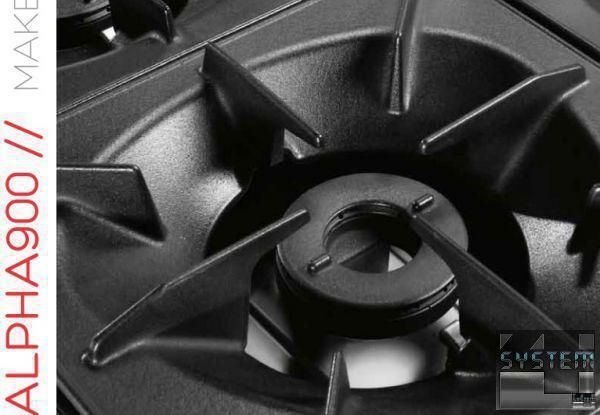 Газова плита на 4 пальники Angelo Po 191FAAE на електричній духовій шафі відноситься до теплової модульної лінії Alpha900 . Конструкція із нержавіючої сталі 18-10, товщиною 20/10 мм. Пальники, кришки пальників та решітки для посуду виготовлені з чавуну з напівблискучою кислотостійкою чорною емаллю RAAF. Відкриті пальники мають подвійну корону вогню, дві з них потужністю 7 кВт (діаметр 110 мм) та дві потужністю 10 кВт (діаметр 130мм). Термостатичний клапан з пілотом, термопарою та п'єзоелектричним займанням. Запатентована труба Вентурі: інноваційний зразок для максимальної гігієни у згорянні, що мінімізує шкідливу емісію (КО).