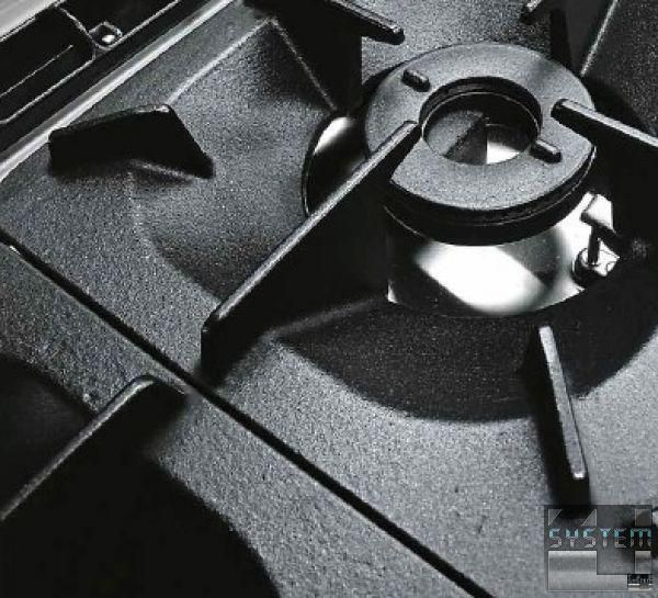 Три открытые горелки имеют мощность по 6 кВт каждая (диаметр 110 мм) с двойной короной огня, одна горелка мощностью 4 кВт (диаметр 80 мм) с одной коронорй огня, а максимальная температура нагрева - 400°C.