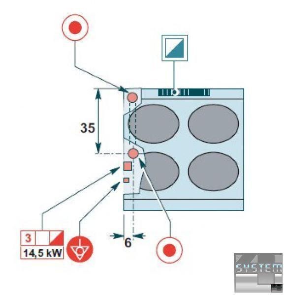 Плиты оборудованы 4 круглыми электрическими конфорками, две из которых мощностью 2,6 кВт каждая (диаметром 220 мм) и две - мощностью 2 кВт (диаметром 180 мм), сделанные из чугуна с термостатом безопасности.