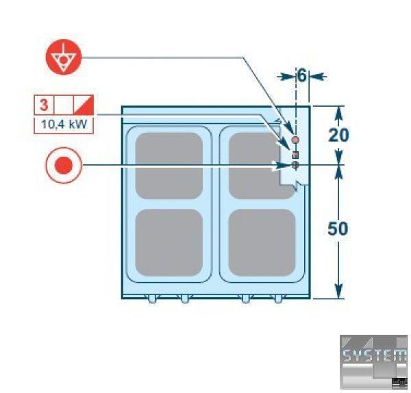 Нижний отсек интегрирован в столешницу. Он отделен от верхней части (плиты) изолированной структурой, которая служит для размещения электрооборудования, с фронтальным доступом к органам управления.