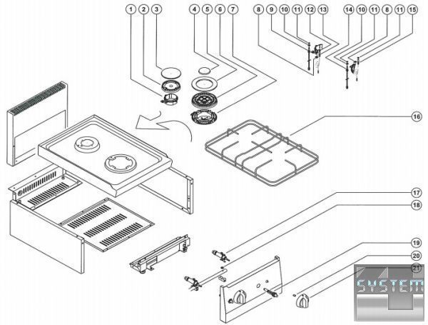 Газовые плиты выпускаются как с открытыми, так и с закрытыми источниками нагрева. В последнем случае над горелками располагается сплошная металлическая нагревательная поверхность, на которую ставится посуда. Открытые конфорки лишены инерционности нагрева и позволяют быстро менять его интенсивность регулировкой пламени.