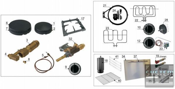 6 конфорок - 3 х 3,5 кВт, 3 х 6,0 кВт