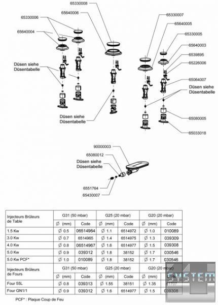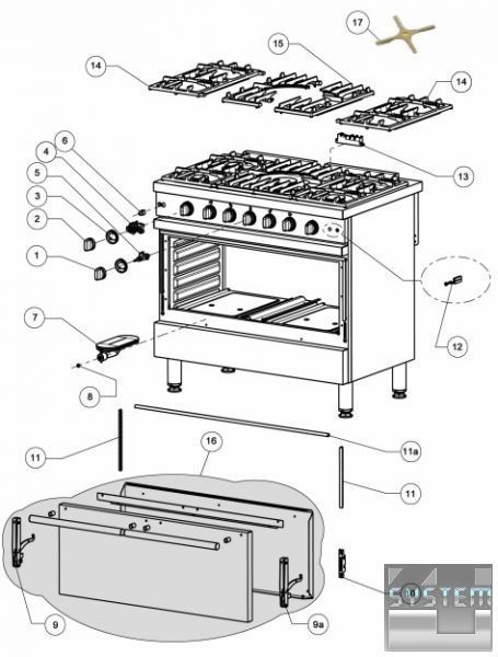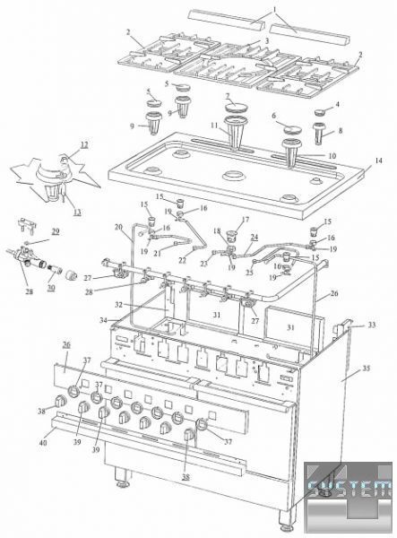 5 конфорок - 1 х 5,0 кВт, 1 х 4,0 кВт, 2 х 3,0 кВт, 1 х 1,5 кВт