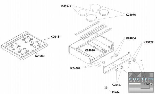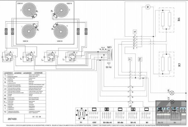 4 конфорки - 230 мм, 4 х 2,5 кВт