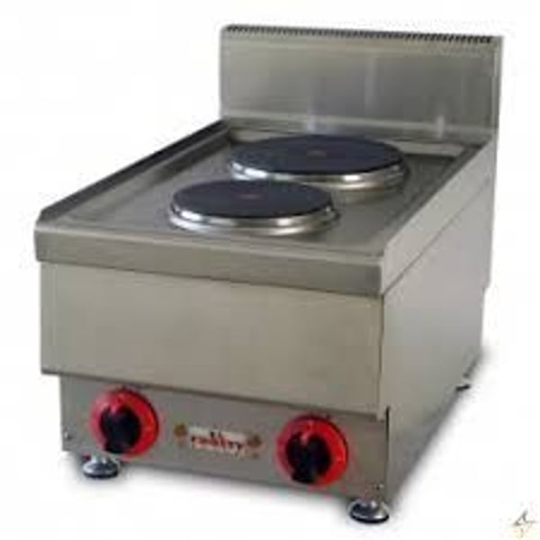 Настільна електрична плита без духовки, без бази, три положення нагрівання конфорок. У даній моделі 2 конфорки діаметром 190 мм та 230 мм. Корпус виконаний із нержавіючої сталі. Вбудоване термореле запобігає перегріванню конфорок. Напруга 220В, потужність 4,60 кВт.
