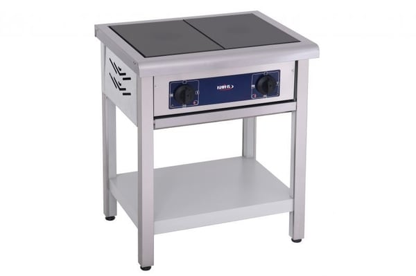 Корпус обладнання виконаний з високоякісної нержавіючої сталі, оснащена плитою 2 прямокутними конфорками, які утворюють рівну поверхню. Округлені грані передньої панелі відрізняються сучасним дизайном.