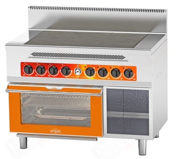 Можуть оснащуватися дверима (для моделей без духовки) та духовими шафами. Наявність заднього вентильованого борту забезпечує захист від проливання рідини та вентиляцію внутрішніх елементів. Духові шафи плит оснащені універсальними напрямними, що дозволяють використовувати гастроємності GN 1/1 (530*325) або проти 600 *400 мм.
