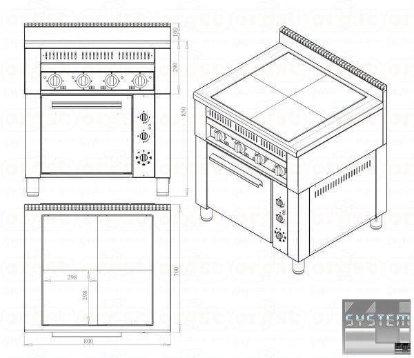 - габаритні характеристики духової шафи адаптовані для застосування як аркуш для випікання та смаження гастроємностей міжнародного гастрономічного стандарту GN 1/1 (духовка комплектується гратами).