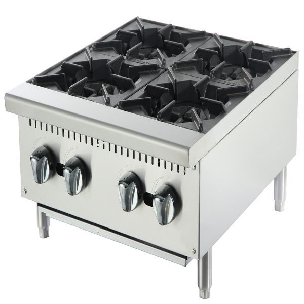 На передній панелі промислова плита Hendi оснащена приладовим відсіком, на якому виведені ергономічні і температуростійкі регулятори подачі газу, завдяки їм можна задавати інтенсивність нагріву.