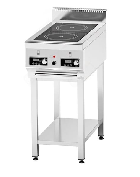Двохконфоркова підлогова індукційна плита призначена для приготування страв у наплитному посуді на кухнях ресторанів, барів, кафе, на підприємствах громадського харчування та торгівлі.