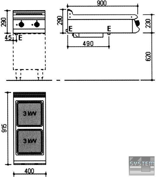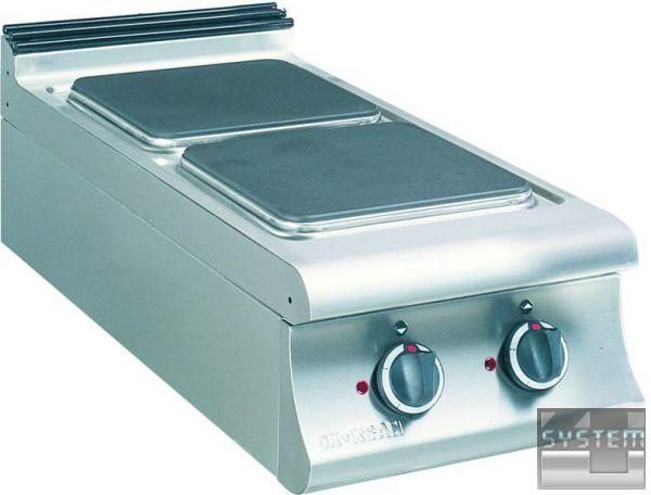 Зовнішня поверхня зроблена із сатинованого хромонікелевого листа 18/8 н/с. Усі незахищені листи алітовані. Весь електричний стіл та пристрої керування, включаючи пластини, відповідають міжнародним стандартам. Окрема робота пластин у різних положеннях за допомогою 4-ступінчастих перемикачів. З шафою (з дверима або без) придатна для багатофункціонального використання або на консолі для установок ізольованого типу.