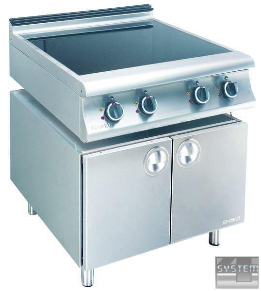 Зовнішня поверхня зроблена із сатинованого хромонікелевого листа 18/8 н/с. Усі незахищені листи алітовані. Керамічний верх 6 см запобігає проникненню пролитої рідини. Весь електричний стіл та пристрої управління. включаючи керамічні покриття, відповідають міжнародним стандартам. Нагрівальні елементи, що регулюються за допомогою термореле для поступового нагрівання, працюють окремо. З шафою (з дверима або без) придатна для багатофункціонального використання або на консолі для установок ізольованого типу