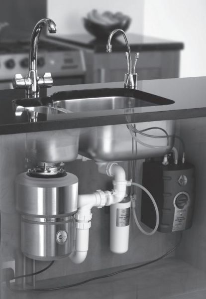 Сифонний кран запобігає зворотному потоку води в систему подачі. Після включення води задіюється соленоїдний клапан, який гарантує проходження води через подрібнювач. Клапан управління автоматично подає ту кількість води, яка потрібна для роботи подрібнювача.