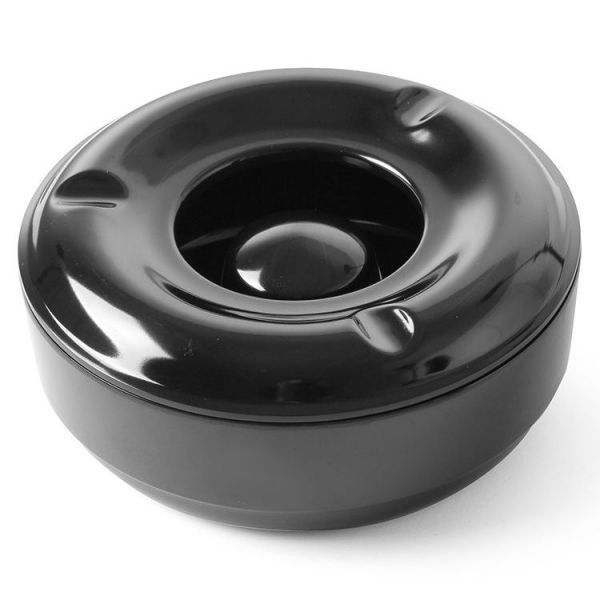 Попільничка виготовлена із чорного меламіну, з кришкою. Призначена для використання поза приміщеннями.