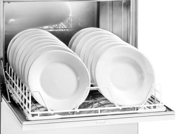 Термостат з нерухомим баком гарантує максимальні результати при використанні промислових миючих засобів. Температура термостата ванни постійна від +55 °C до +60 °C. Витрата води при ополіскуванні посуду у камері не перевищує 3 л.