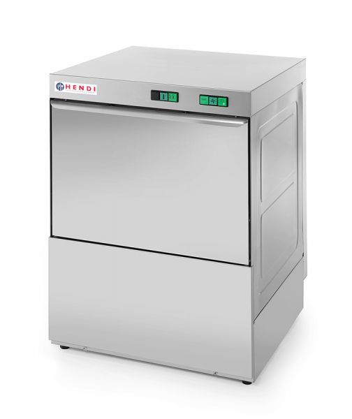 Посудомийка фронтальна Hendi 230473 - професійне посудомийне обладнання для миття кухонного посуду - склянок та чашок, тарілок та столових приладів. Ідеально підійде для кухонь та миючих цехів ресторанів, кафе та інших підприємств комунального харчування.