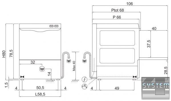 | Потужність миючого насоса: | 0,52kW/0,7Hp |